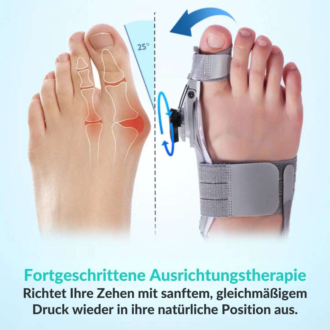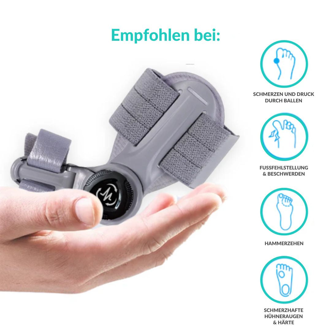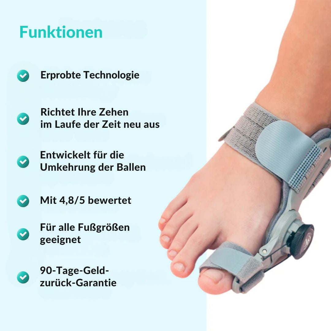 Es hilft, Muskelverspannungen zu lösen, indem es einfach den großen Zeh in seine natürliche Position zurückzieht, was im Laufe der Zeit zu einer schmerzfreien, natürlichen Neuausrichtung des Zehengelenks führt.